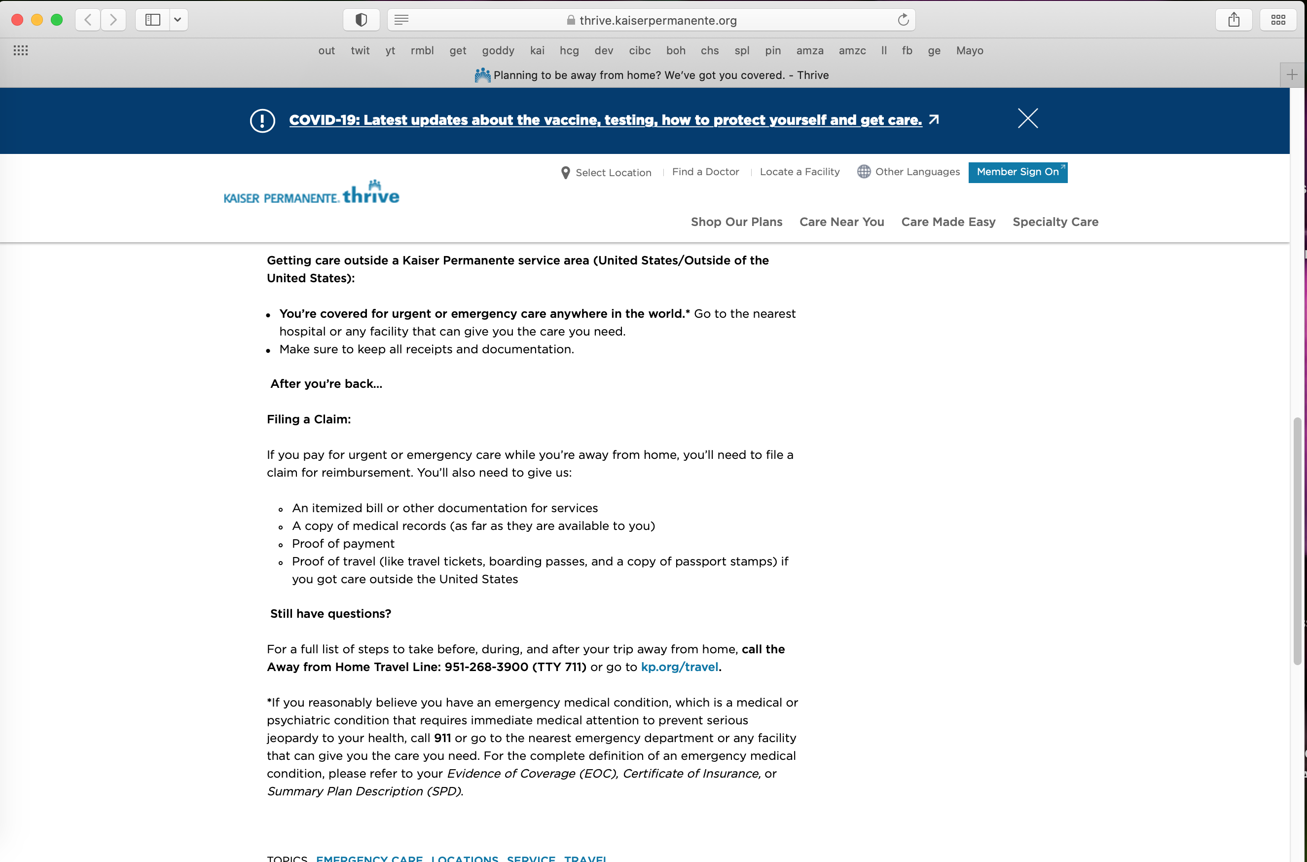 Kaiser Travel Site that I referenced before going out of network.